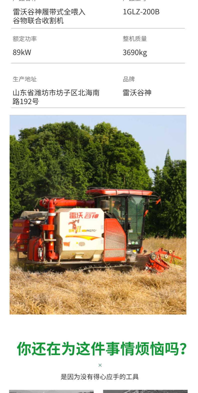 雷沃谷神履带式全喂入谷物联合收割机4LZ-7G1